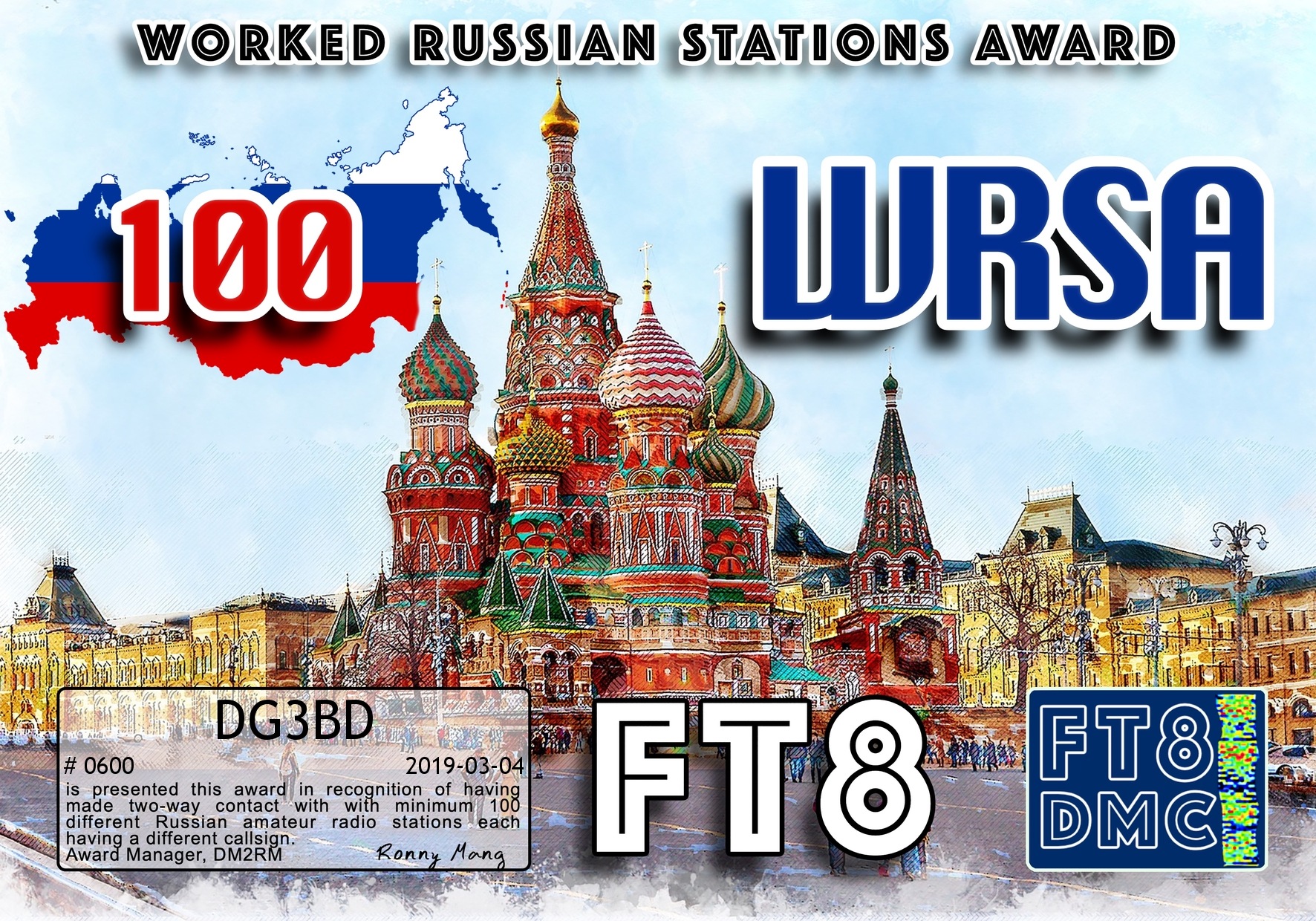 Rig: Yaesu FT-991, max. 100 watt in SSB, in digi modes max. 20 watt,