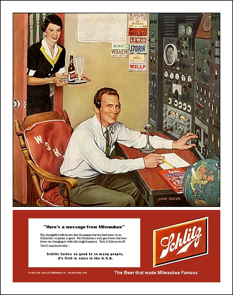 An XYL and her OM HAM, Circa 1952.... when Schlitz Beer was king.